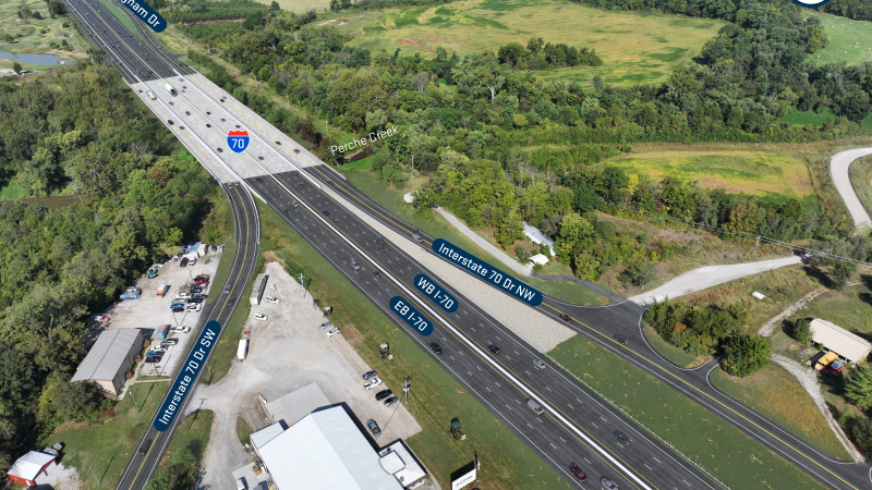 Proposed design rendering I-70 interchange at north and south outer roads at Perche Creek.