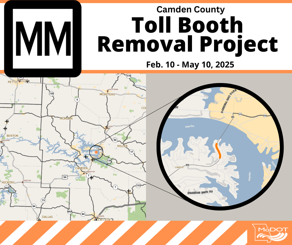 JEFFERSON CITY, Mo. – The toll booths on Camden County Route MM are set to be removed beginning next week. Crews from Gene Haile Excavating Inc., working with the Missouri Department of Transportation, plan to begin the removal process on Monday, Feb. 10, 2025. Completion is expected by May 1, 2025.