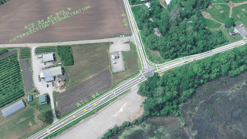 Conceptual rendering of the Route 94 and Route B intersection from Google Earth maps.