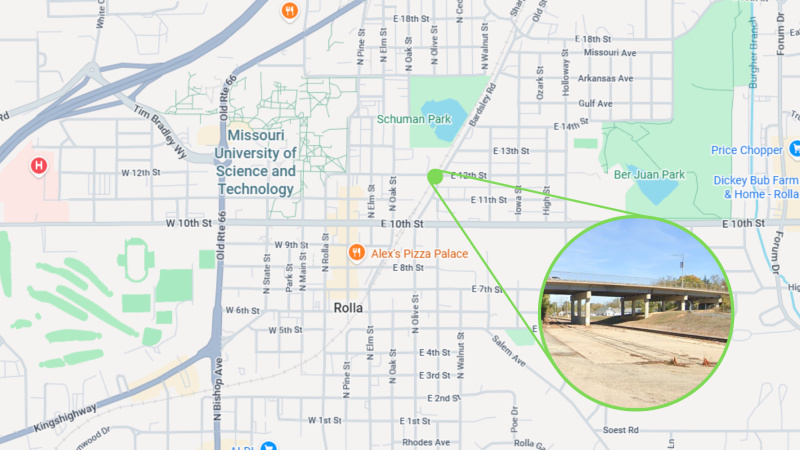 The Phelps County Route BB bridge in Rolla over Oak Street, Olive Street, and BNSF Railway, was built in 1974. While the supporting structures are in good condition, the bridge deck - or driving surface - is in need of repairs. The project will include repairing the bridge deck as well as adding new approach pavement and pavement markings.